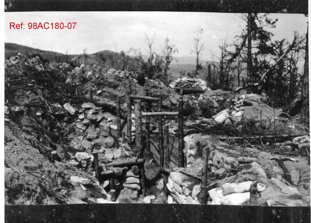 Deux chasseurs alpins sur un bac avec des brodequins en Lorraine pendant la Première Guerre mondiale