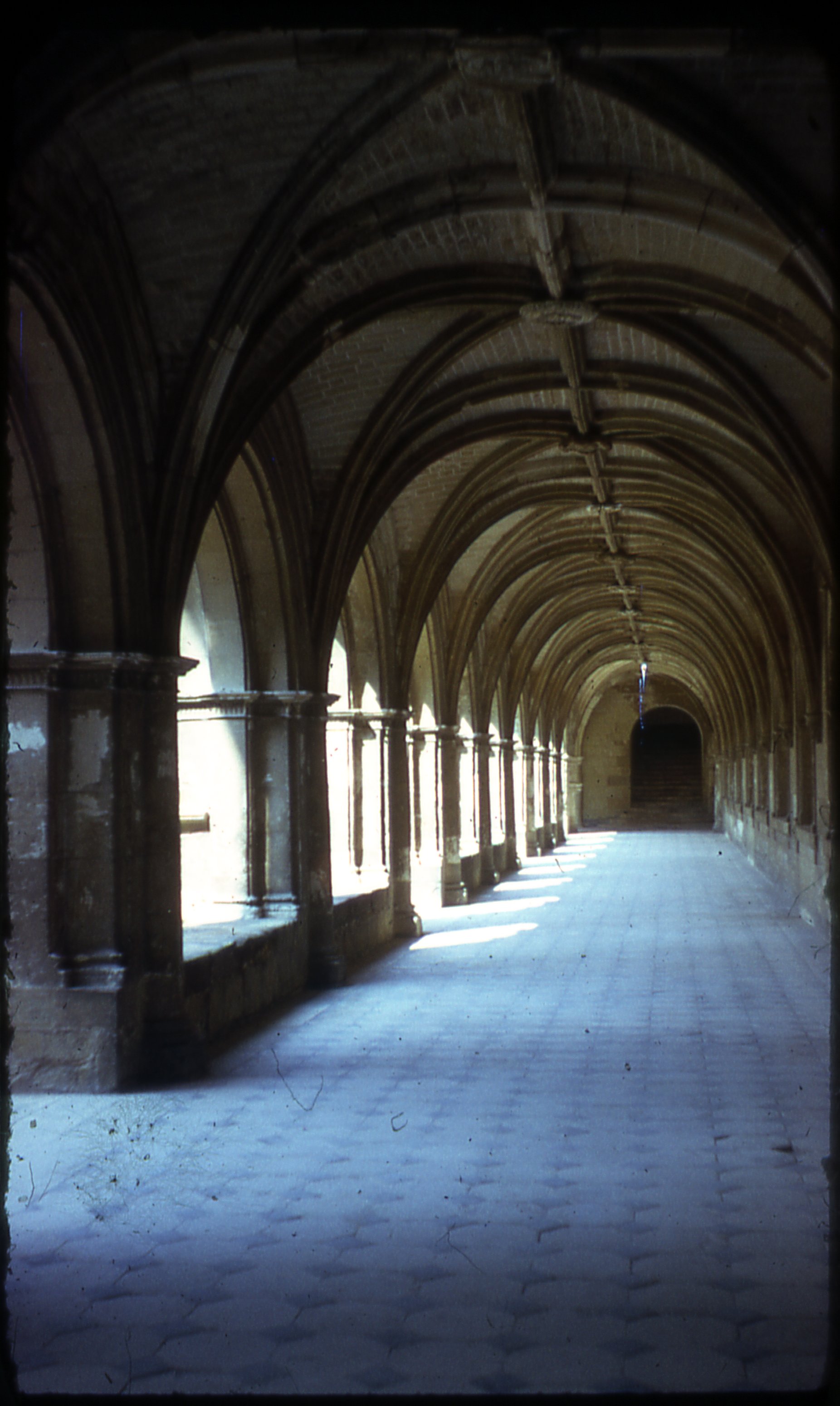 Cloître de l'Abbaye royale de Fontevraud en Val-de-Loire dans les années 1960.