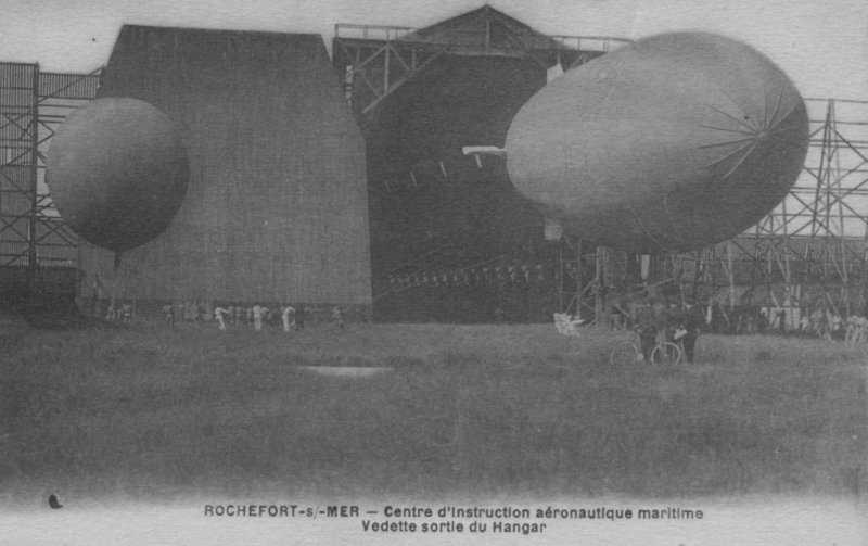 Ballon dirigeable Vedette sortie du hangar au Centre d'instruction aéronautique maritime de Rochefort.