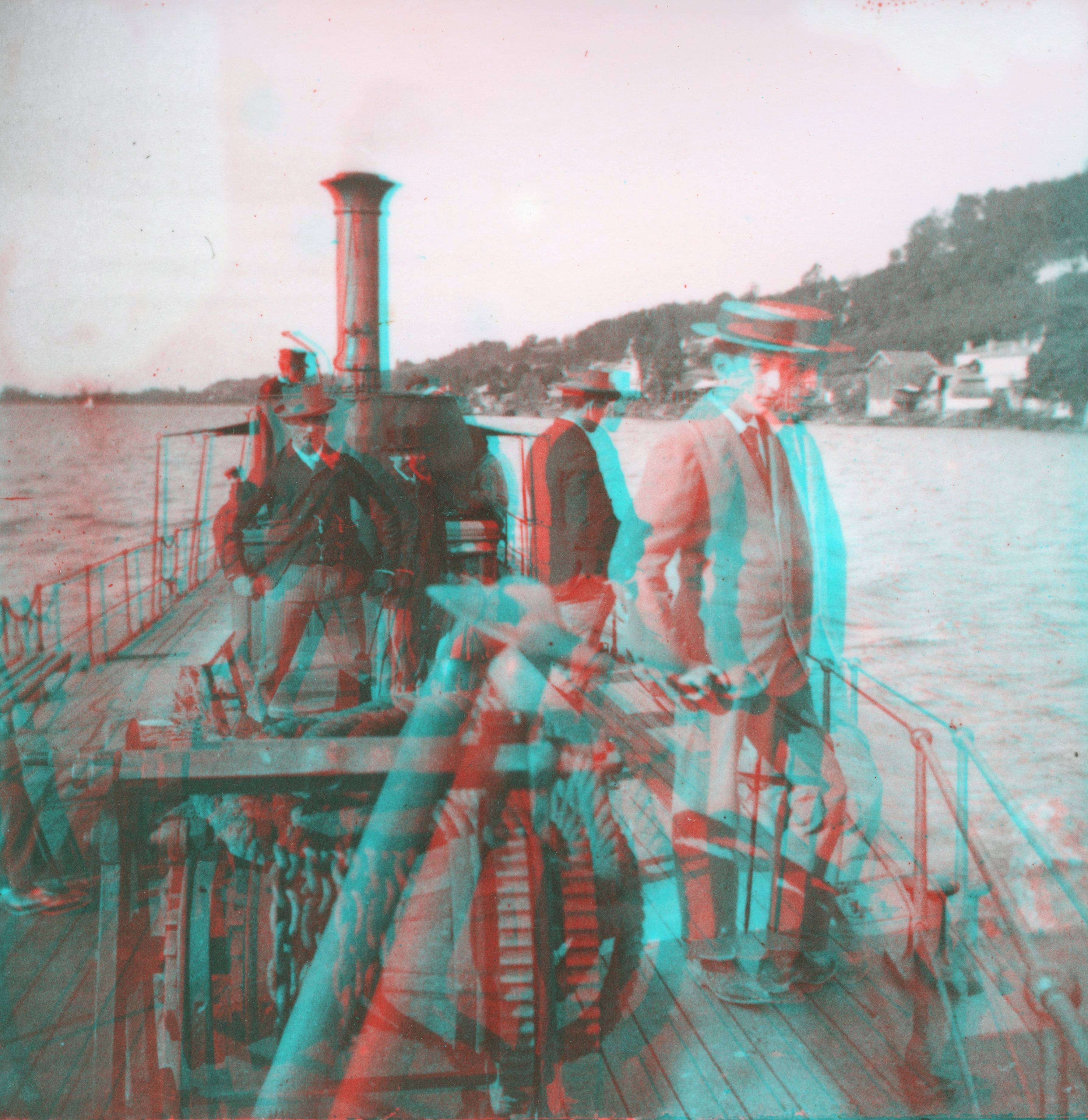 Cette petite vedette fluviale à vapeur de la Compagnie "Les Hirondelles" fait la traversée vers Lormont au pied des collines qui dominent cette ville, comme cela avait lieu plusieurs fois par jour. Ces messieurs en tenue printanière, un jour calme, retournent vers Lormont, sans doute en fin d’après-midi. Elle emmène à même le pont de nombreux ouvriers des usines de Bacalan qui logeaient en effet dans cette commune réputée « populaire » et faisaient quotidiennement la traversée, ce qui leur évitait un long trajet qu’aurait nécessité d’emprunter plusieurs tramways s’il avait fallu traverser par le seul pont existant, celui de Pierre, situé à plus d’un kilomètre en amont de Lormont comme de Bacalan. Cette traversée fut maintenue (avec une navette équipée d’un roof plus confortable) jusqu’à la fin des années 1950, et était aussi utilisée dans l’autre sens pour transporter de Bacalan à Lormont les ouvriers et employés des Ateliers en Chantiers de la Gironde quai de Brazza qui résidaient en rive gauche.