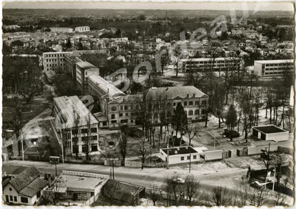 Deux vues aériennes du lycée mixte de Talence.
