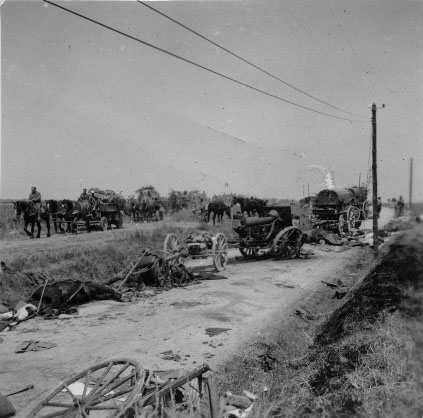 Convoi allemand contournant des batteries d'artilleries françaises en 1940 en France