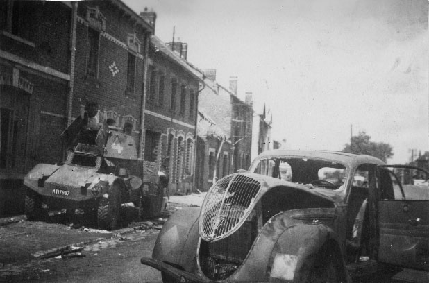 AMD Panhard 178 détruit à côté d'une voiture en mai juin 1940 pendant l'avancée des Allemands
