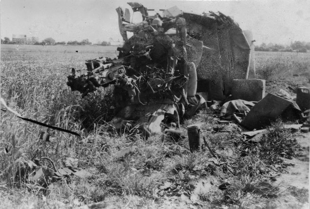 Camion militaire français détruit en mai 1940 en France pendant la Seconde Guerre Mondiale