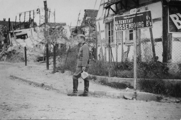 Officier allemand dans un village proche de la frontière en Lorraine en 1940