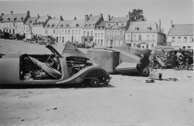 Véhicules français de réfugiés abandonnés sur la route en France en 1940