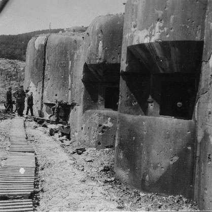 Des allemands observent des Blockhaus délabrés en juin-juillet 1940 en Moselle sur la ligne Maginot