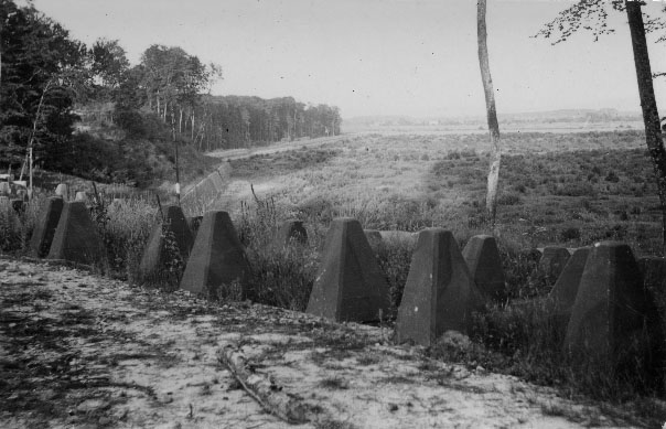 Défenses antichars en juillet 1940 près d'une forêt en Moselle sur la ligne Maginot