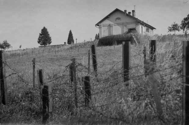 Maison encerclée de défenses antichars en Moselle sur la ligne Maginot en juillet 1940