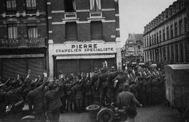 Soldats allemands saluant Hitler à Charleville Mézieres le 24 mai 1940 pendant la Seconde Guerre mondiale