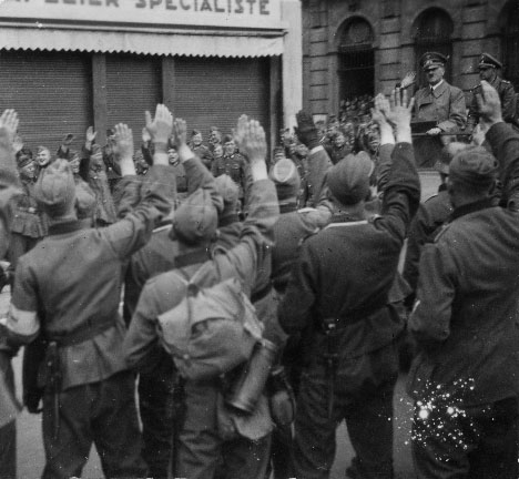 Des soldats allemands saluent Hitler à Charleville-Mézières le 24 mai 1940