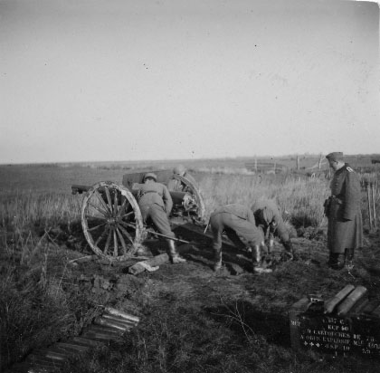 Un groupe d'allemands trouve un canon avec un chargement d'obus explosifs français. Ils testent le matériel abandonné en juin 1940 en France, pendant la Seconde Guerre mondiale.