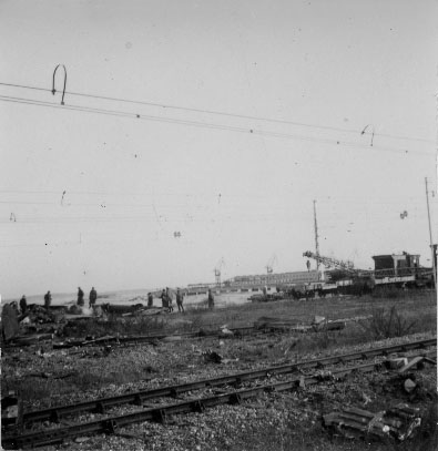 Soldats allemands regardant les restes d'un avion abattu à La Pallice, à La Rochelle en 1940