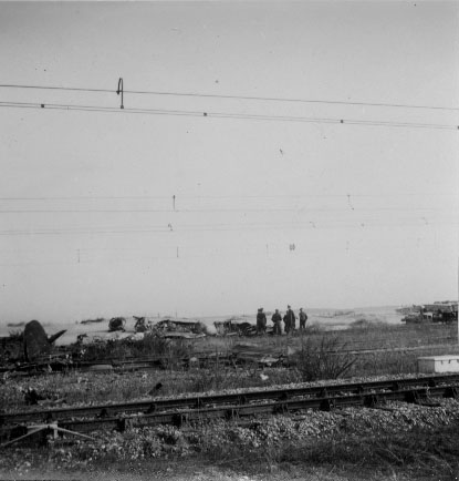 Soldats allemands regardant les restes d'un avion abattu à La Pallice à La Rochelle en 1940