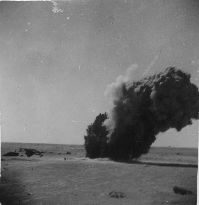 Explosion provoquée par un tir d'artillerie 39-45, surement en Afrique du Nord, pendant la Seconde Guerre mondiale.