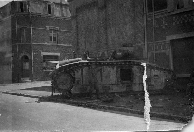 Char SOMUA français abandonné par l'armée française dans une ville de France en mai 1940