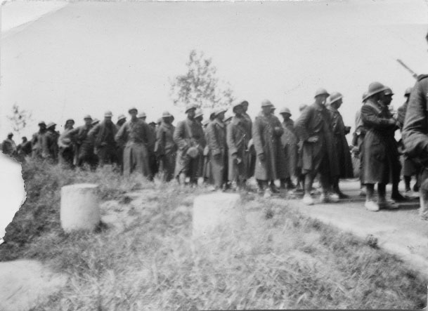 Régiment de prisonniers nord-africains se rendant vers les camps de prisonniers vers l'Allemagne en France en 1940 pendant la Seconde Guerre mondiale.