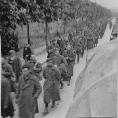 Convoi de prisonniers français marchant vers leur camp en 1940 en France