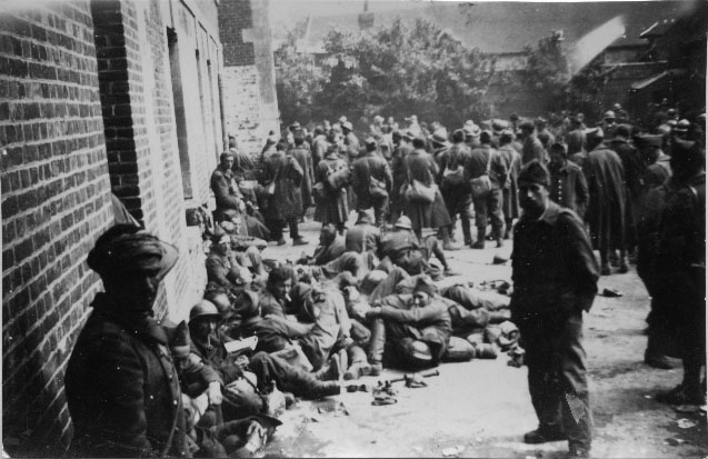 Rassemblement de prisonniers français en attente d’être emmenés vers des camps en Allemagne, en France en 1940