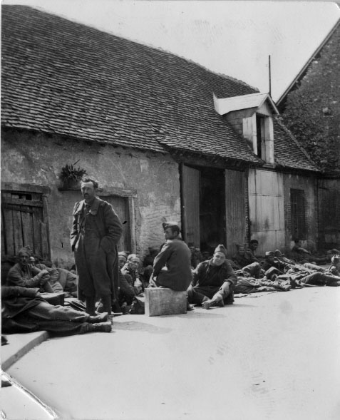 Prisonniers français en attente de partir vers un camp de prisonnier en Allemagne en 1940