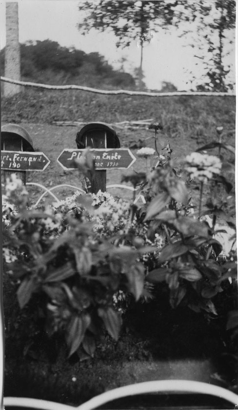 Rangée de tombes de soldats français improvisées à la façon d'un jardin en France en 1941