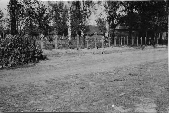 Cimetière improvisé de nombreuses tombes de soldats allemands. Chaque tombe est surmontée d'une croix de guerre. La photo est prise en bord d'une route de campagne française en mai 1940 pendant la 2de guerre mondiale