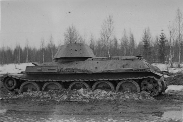 Char T 34 russe abandonné sur le front de l'est entre 1941 et 1944.