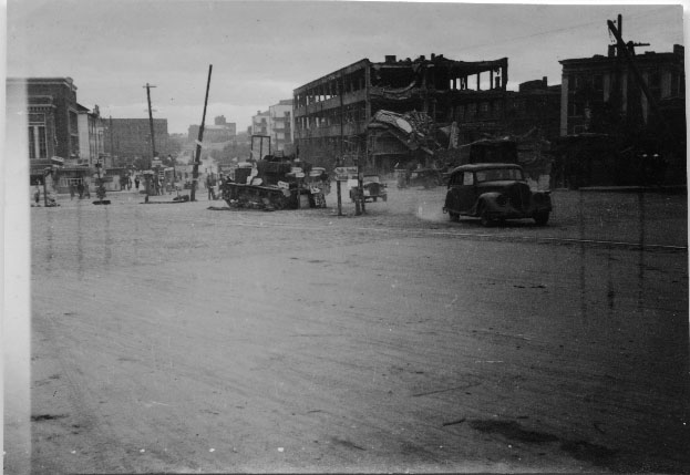 Ville de Russie en partie détruite par les bombardements allemands entre 1941 et 1944, pendant la Seconde Guerre mondiale.