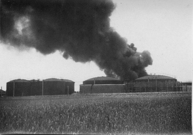 Incendie volontaire des réserves d'essence et de fioul par les armées françaises pour ne pas le donner aux allemands au nord de La Rochelle en juin 1940