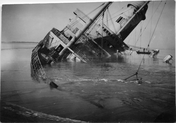 Le paquebot Champlain à la sortie du port de La Pallice en 1940. Ce paquebot revenait des Etats-Unis, de St Nazaire. Les allemands ont mouillés des mines, il en a touché une et a coulé.