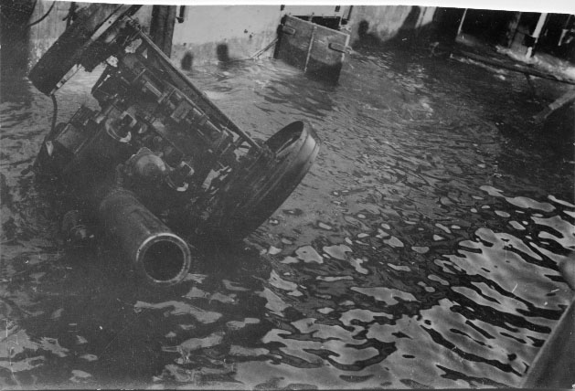 Canon se trouvant dans le paquebot Champlain à la sortie du port de La Pallice en 1940. Ce paquebot revenait des Etats-Unis, de St Nazaire. Les allemands ont mouillés des mines, il en a touché une et a coulé.
