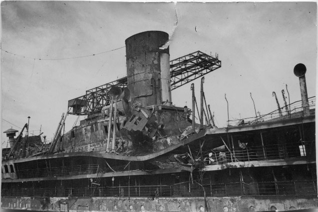 Paquebot Foucault bombardé par les Allemands dans la nuit du 19 au 20 juin 1940.