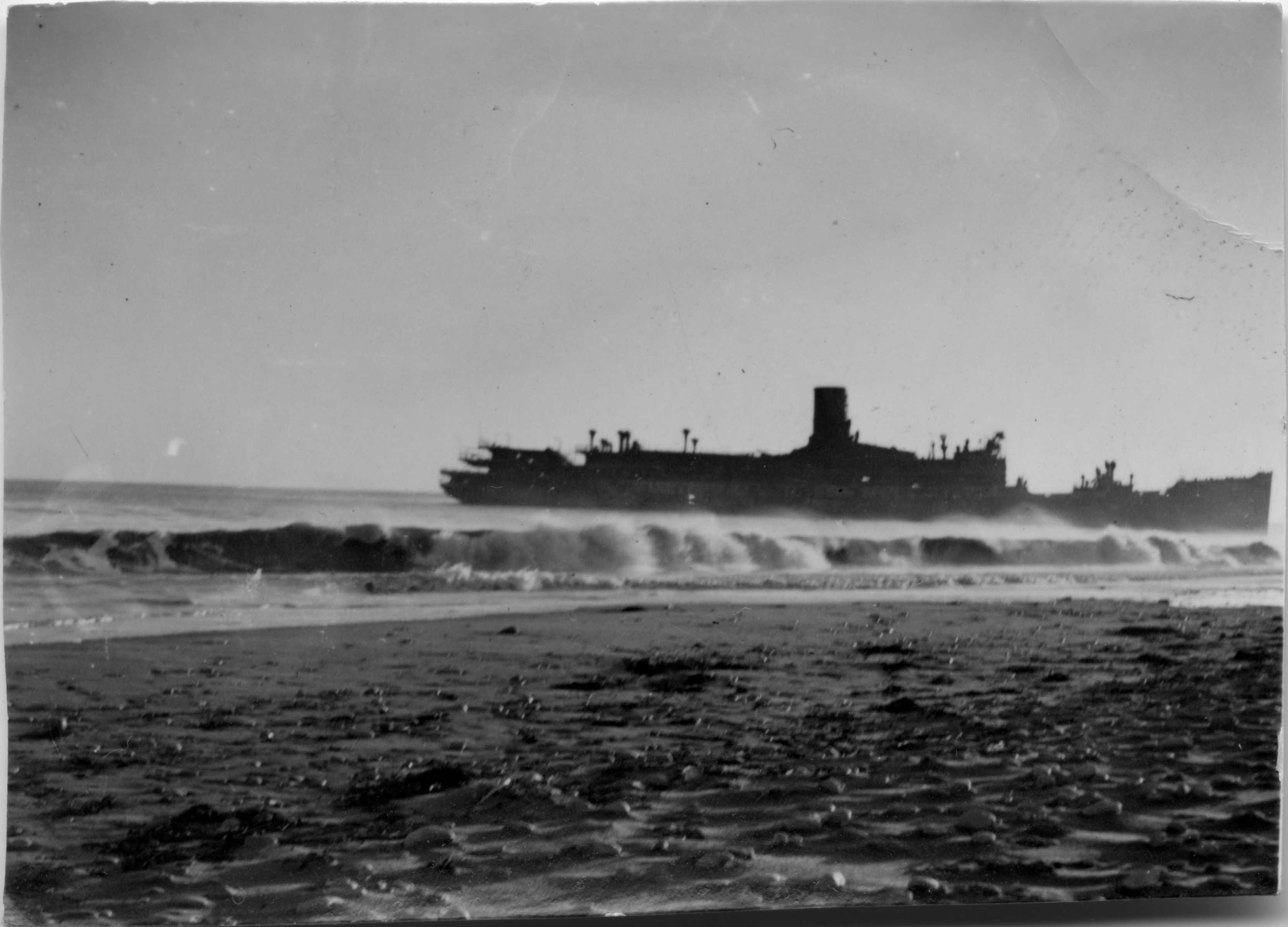 Paquebot Foucault échoué sur la plage de Sablanceaux à Rivedoux-Plage en mai 1942 sur l'île de Ré