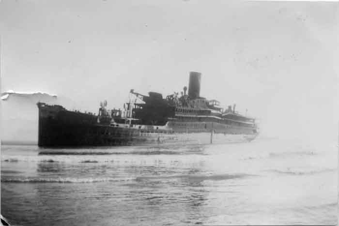 Paquebot Foucault échoué sur la plage de Sablanceaux à Rivedoux-Plage en mai 1942 sur l'île de Ré