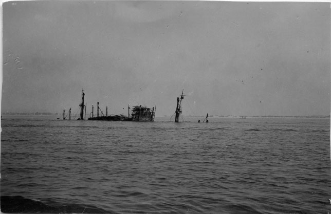 Bateau ayant sûrement sauté sur une mine entre 1940 et 1945 à l'entrée du port de La Pallice à La Rochelle, pendant la Seconde Guerre mondiale.