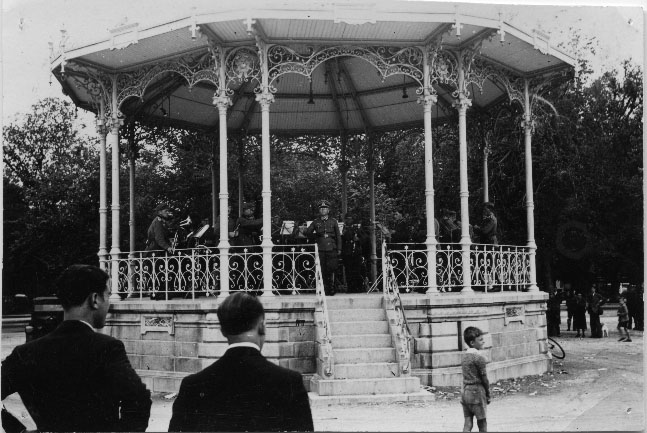 Concert dans un kiosque sur la place de Verdun à La Rochelle en 1940