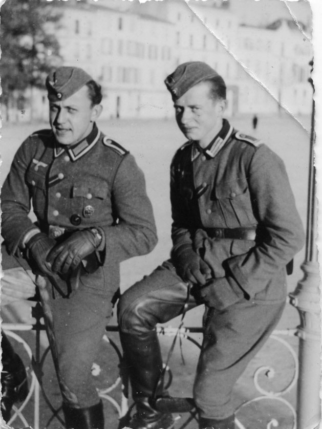 Militaires allemands assis sur le kiosque à musique place de Verdun à La Rochelle en 1941 pendant le Seconde Guerre mondiale.