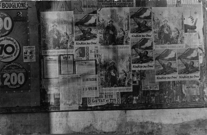 Affiches de propagande allemande sur un mur de l'Oratoire à La Rochelle en 1940