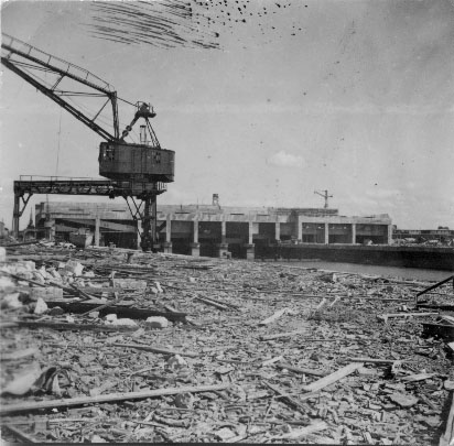 Dégâts causés par un bombardement près de la base sous-marine de La Pallice à La Rochelle entre 1943 et 1944 pendant la Seconde Guerre mondiale.