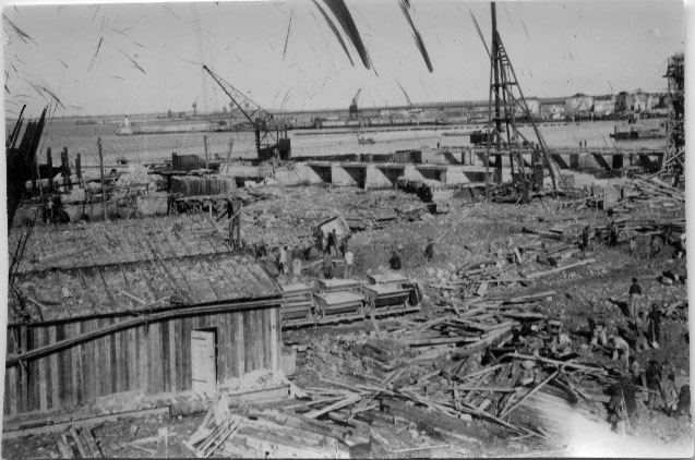Chantier de construction du sas à la base sous-marine de La Pallice à la Rochelle en 1943