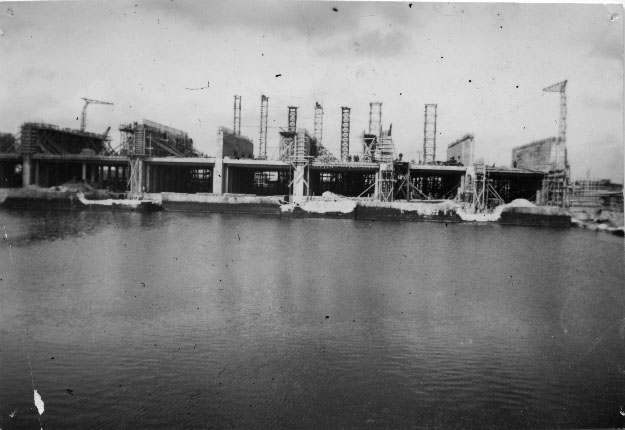 Chantier de construction des alvéoles de la base sous-marine de La Pallice à La Rochelle en 1941