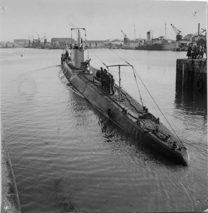 Sous-marin italien sortant du port de La Pallice à la Rochelle entre 1941 et 1943