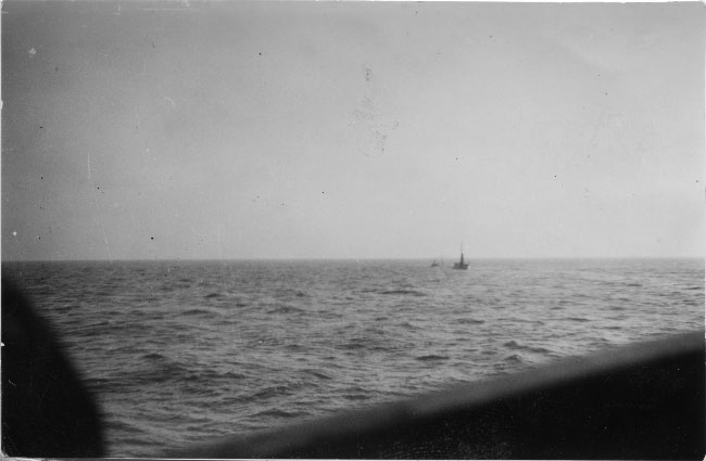 Sous-marin vu d'un bateau sortant du port de La Pallice à La Rochelle entre 1941 et 1944
