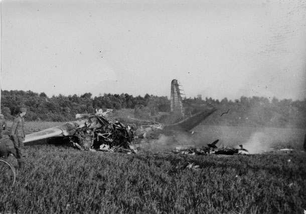 Restes d'un avion en France en 1940 pendant la Seconde Guerre mondiale.