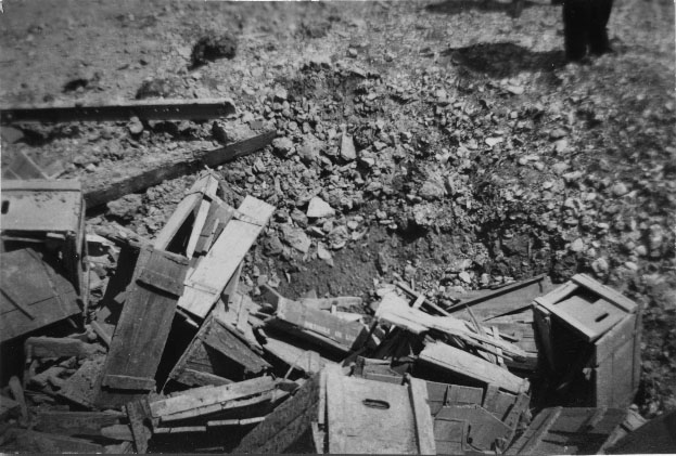Débris de caisses en bois suite à un bombardement à Laleu à La Rochelle entre 1943 et 1944