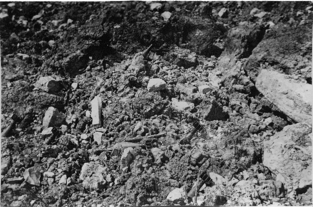 Obus de mortier allemands plantés dans la terre suite à un bombardement en France pendant la Seconde Guerre mondiale.