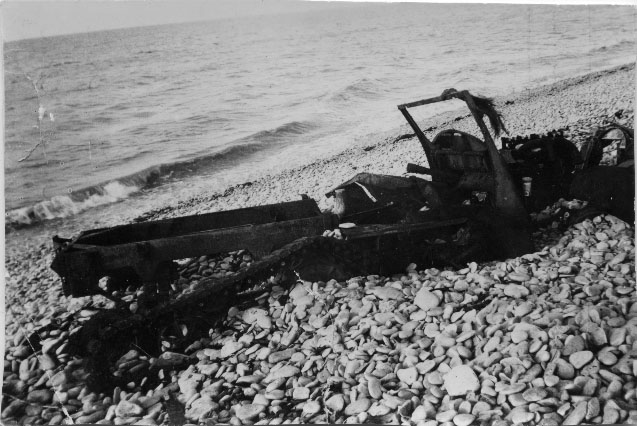 Reste d’un véhicule abandonné sur les galets de la Repentie, près de La Pallice à La Rochelle, par l’armée en retraite (française ou britannique) avant le réembarquement vers l’Angleterre ou l’Algérie.