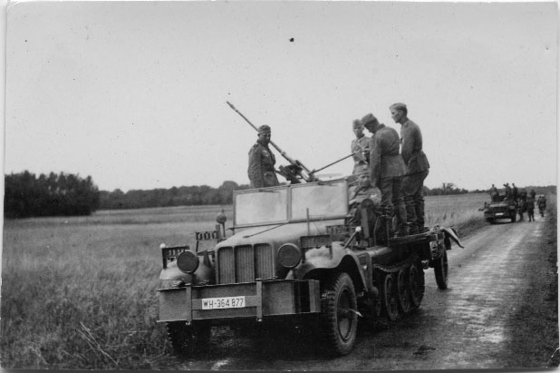 Canon anti-aérien porté sur un semi-chenillé allemand en France en 1941 pendant la Seconde Guerre mondiale.