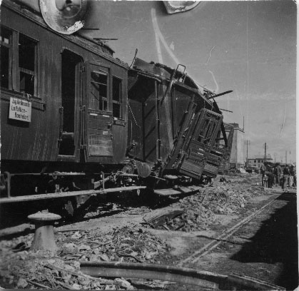 Wagons détruits après un bombardement de La Pallice à La Rochelle entre 1943 et 1944