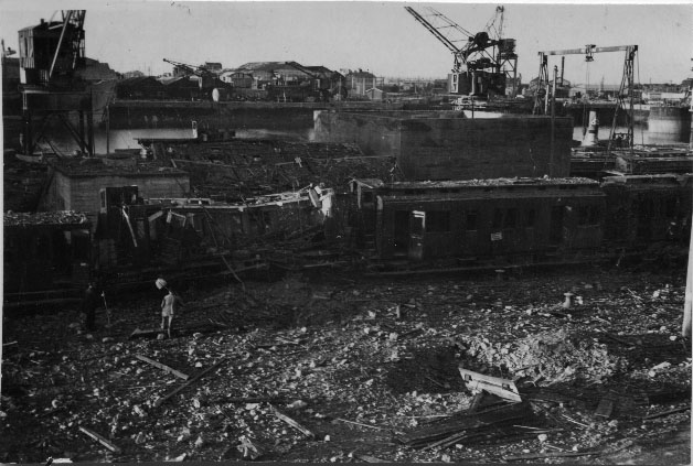 Dégâts causés par un bombardement visant la base sous-marine de La Pallice à La Rochelle entre 1943 et 1944